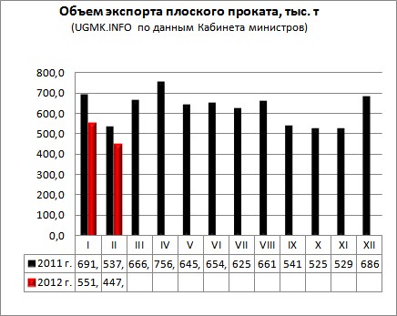 Согласно данным правительства, за первые два месяца 2012 г. украинские металлурги поставили на экспорт 3,596 млн. т стали, что на 7,9% меньше АППГ. При этом в феврале украинский экспорт стали упал до минимальной отметки за последние три года и составил 1,525 млн. т, что меньше показателя января 2012 г. на 26,4%.