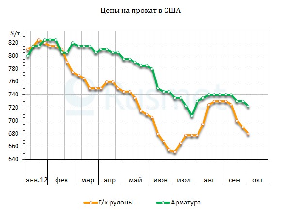 Чтобы добиться заключения новых контрактов, американским производителям проката приходится сбавлять цены. Тем более, что в сентябре лом на местном рынке подешевел более чем на $30 за т и аналогичное понижение ожидается в текущем месяце. Ряд компаний, выпускающих как длинномерный, так и плоский прокат объявили об уменьшении стоимости своей продукции на $30-35 за метрическую т в октября, объяснив свои действия именно падением цен на лом.