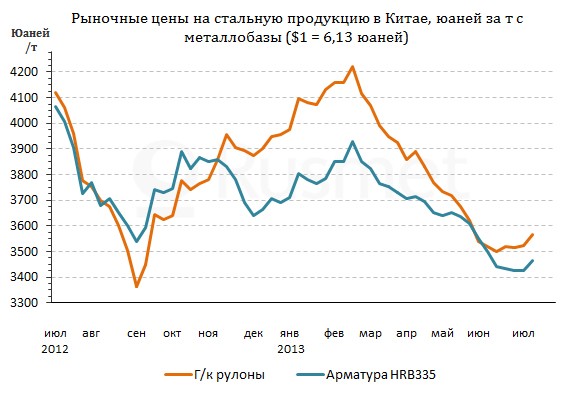 Определенную роль, безусловно, сыграло и увеличение стоимости сырья. Железная руда в июле стабильно превышает отметку $120 за т CFR, несколько возросли в последнее время и цены на металлолом в Китае и в целом на восточноазиатском рынке. Низкая рентабельность сталелитейного производства вынуждает металлургов прекращать политику уступок, поэтому любые изменения затрат на сырье в последнее время быстро отражаются на стоимости стальной продукции.